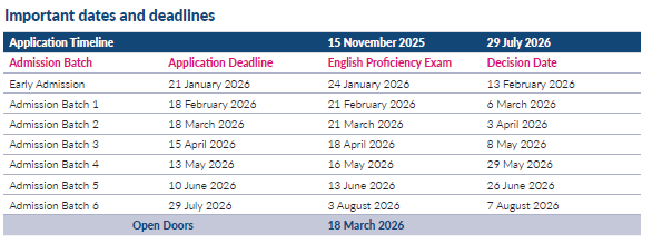 Dates for submission of applications for the academic year 2026-2027 are as follows: