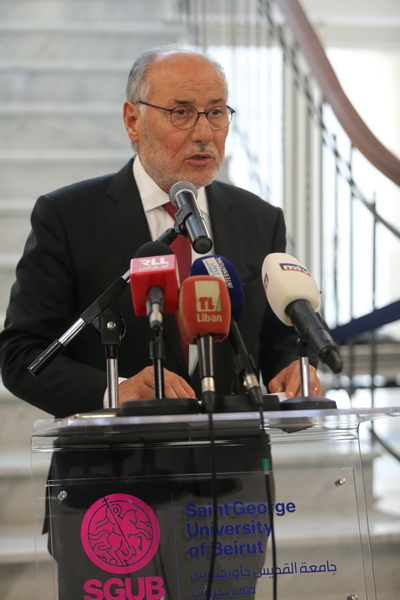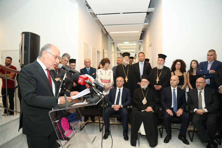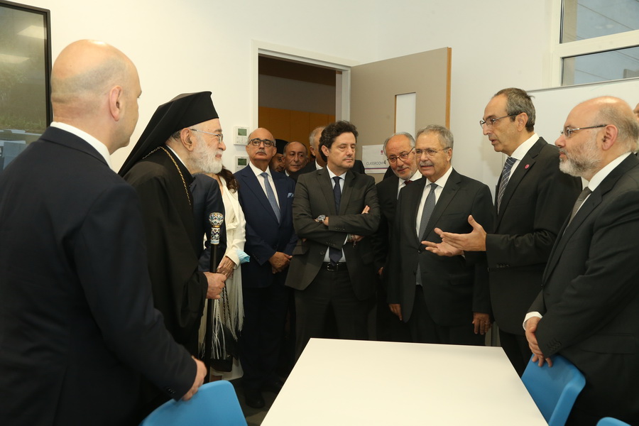 Minister of Education and Higher Education Judge Dr. Abbas Al-Halabi, Minister of Public Health Dr. Firas El-Abyad and Minister of Information Ziad Al-Makari, and official and academic dignitaries accompanied His Eminence in the unveiling of the commemorative plaque. This was followed by the blessing of the main building whose construction dates back to 1913 and which has been rehabilitated, modernized and recently equipped according to the highest educational and technical specifications while preserving its distinctive historical character. The building currently houses SGUB Faculty of Medicine and Faculty of Arts and Sciences.