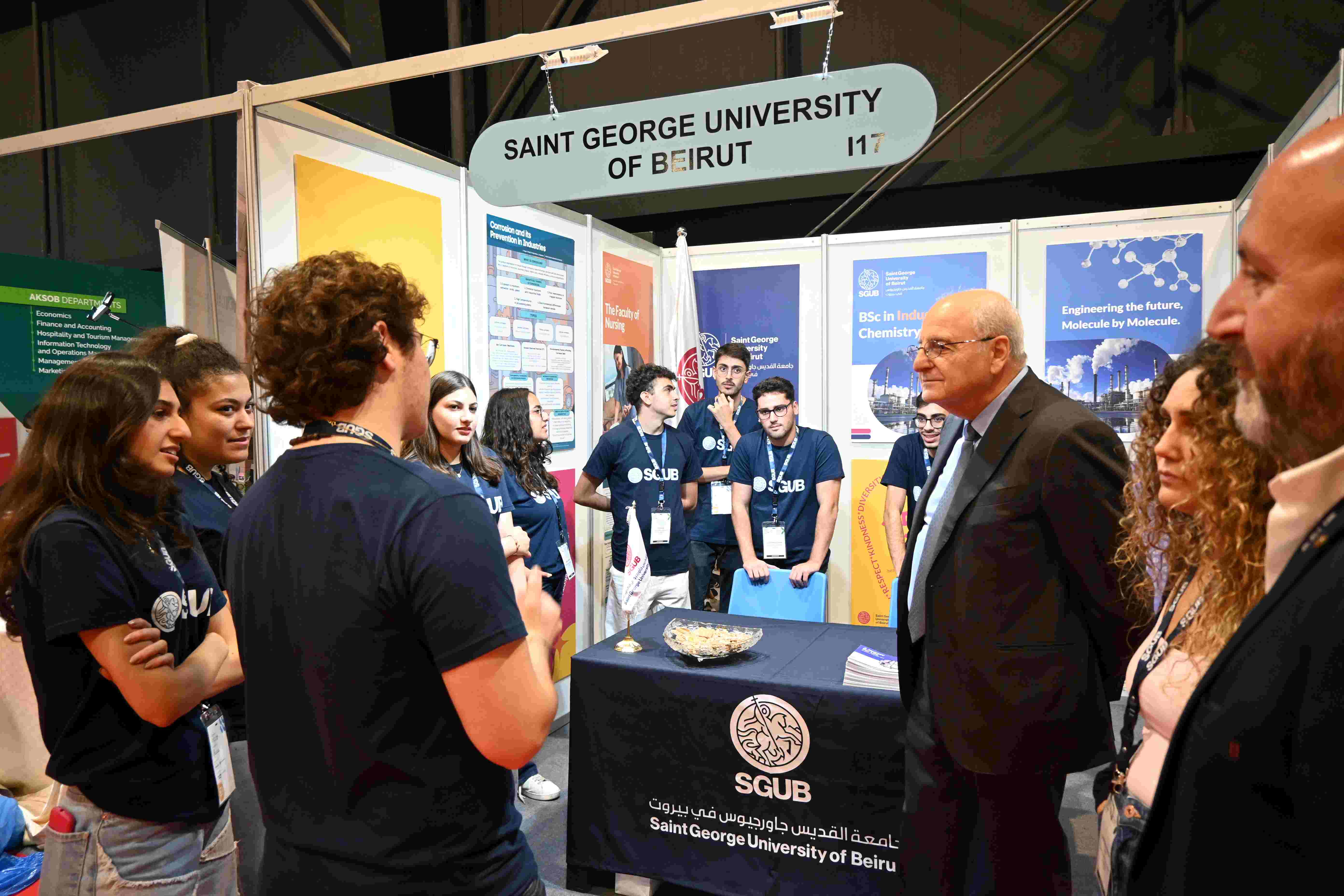Saint George’s University of Beirut (SGUB) proudly participated in the 2025 Lebanese Industry Expo, held from October 29 to November 1. The event allowed SGUB to explore Lebanon’s key industrial sectors and connect with industry leaders, while also giving visitors the chance to engage directly with our faculty and staff. Through these interactions, attendees learned more about our academic programs, especially our Industrial Chemistry major, which prepares students with the knowledge and practical skills needed to contribute to Lebanon’s growing industrial landscape.